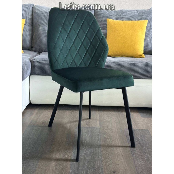 Ромбова стібка. Декоративні ромби по всій площі спинки додають об’єму та візуально «пом’якшують» інтер’єр. Прошивка не робить стілець жорстким – всередині залишається товстий шар м’якого наповнювача.