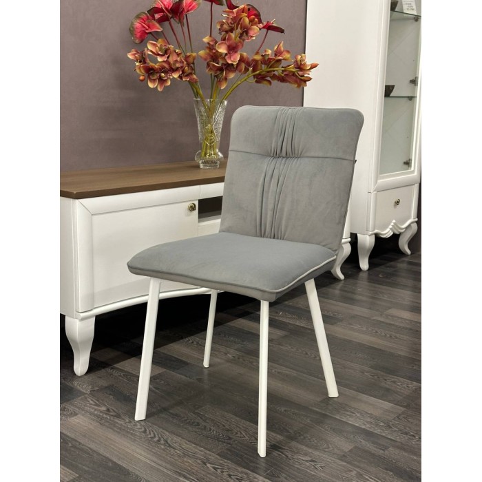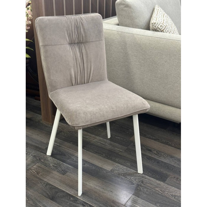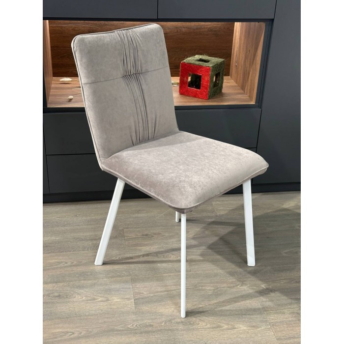 Лукас — це акуратний, сучасний стілець із м’яким силуетом і мінімалістичним декором. Він виглядає стримано, але не нудно — завдяки ефектній драпіровці по центру спинки.