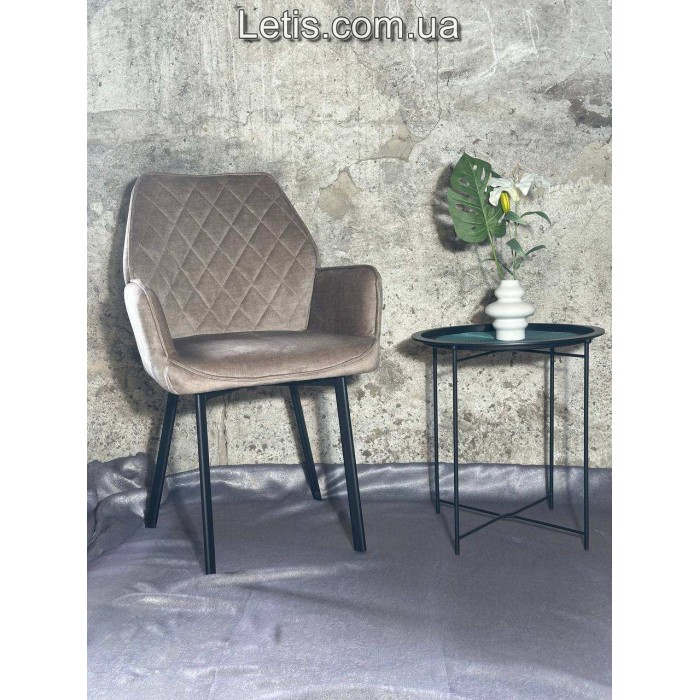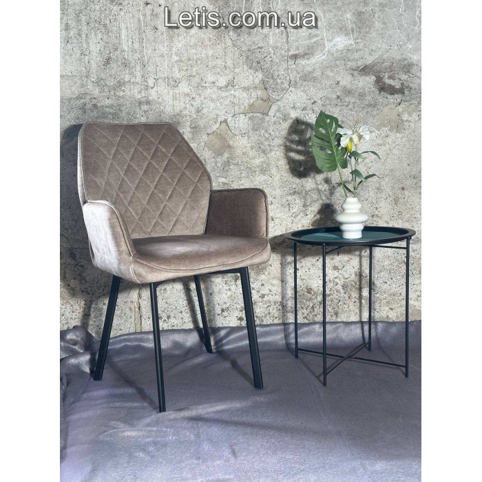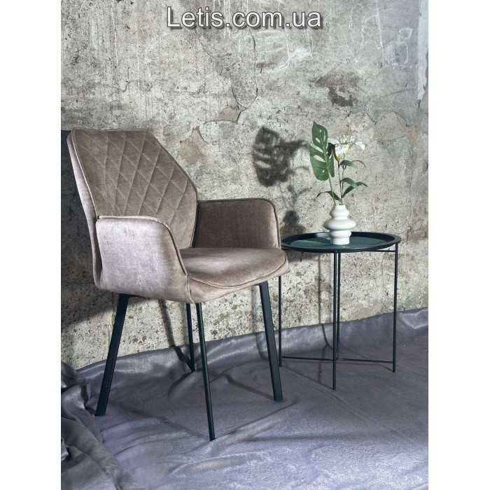 Каркас стільця виконано з металу та фанери, що надає йому міцності та надійності.