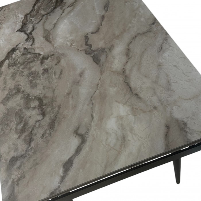 Верх стола виконаний з іспанського керамограніту — матеріалу, що славиться своєю стійкістю до подряпин, перепадів температур і вологи. Стільниця зберігає бездоганний вигляд навіть після багаторічного використання, а догляд за нею займає лише кілька хвилин.