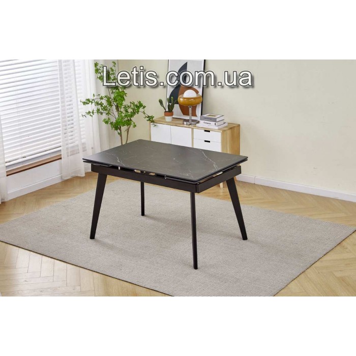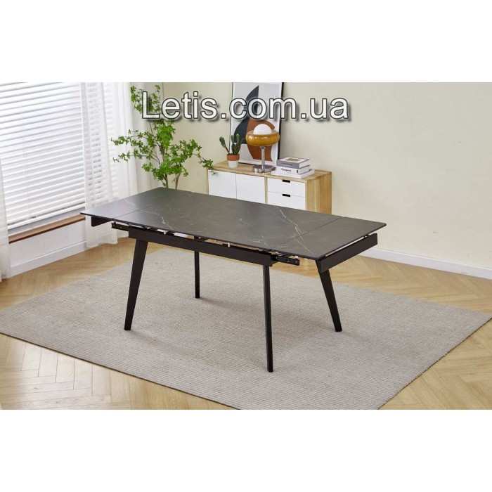 Стіл Oslo 120(+2×30)×80 — кухонний розкладний стіл з керамогранітною стільницею та чорним металевим каркасом