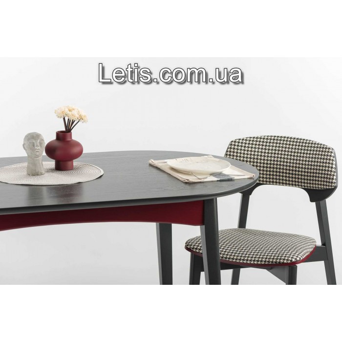 Завдяки м’яким вигинам і складній формі спинки цей стілець ідеально поєднується з круглими та овальними столами, підкреслюючи їхню геометрію.
