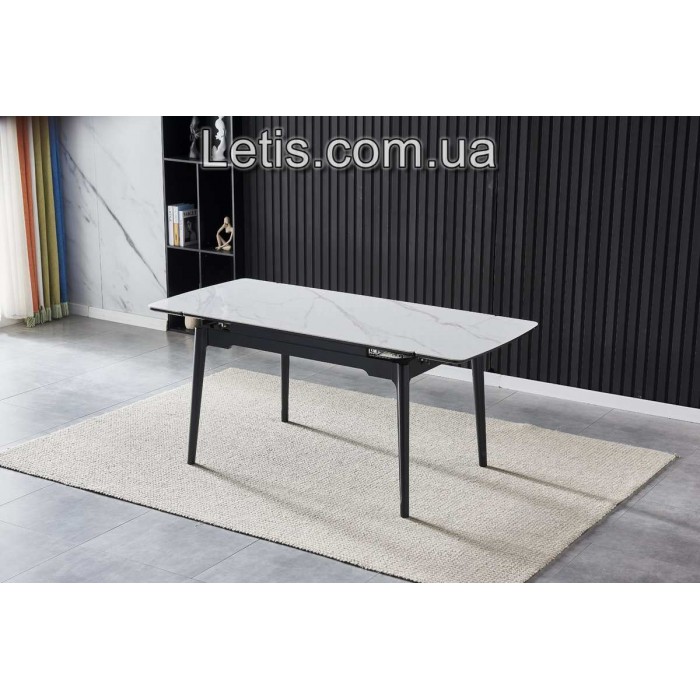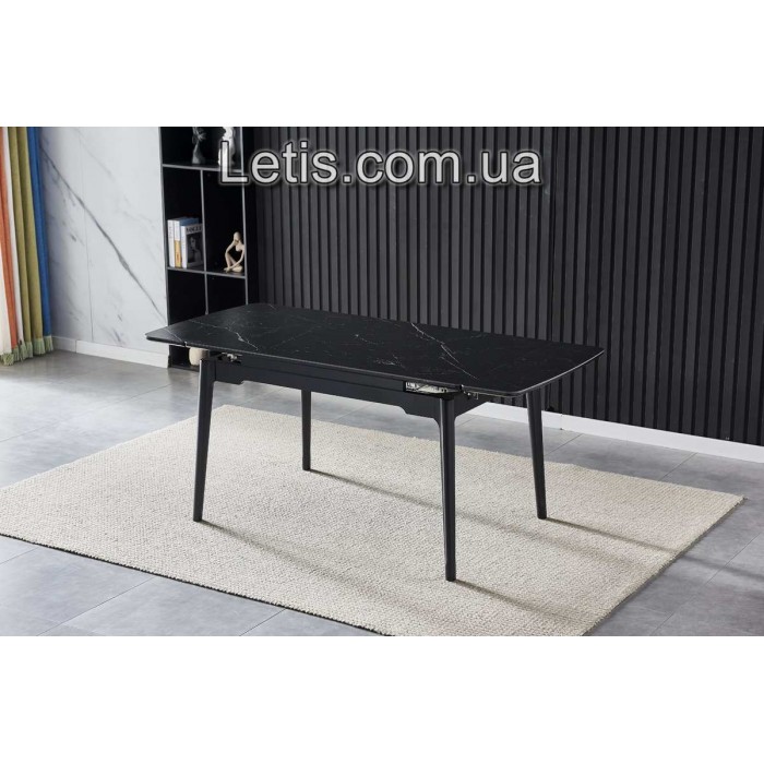 Стіл Bonn II 140(+2×30)×90 см — кухонний розкладний стіл з керамогранітною стільницею на МДФ-основі та чорним дерев’яним каркасом