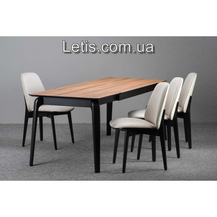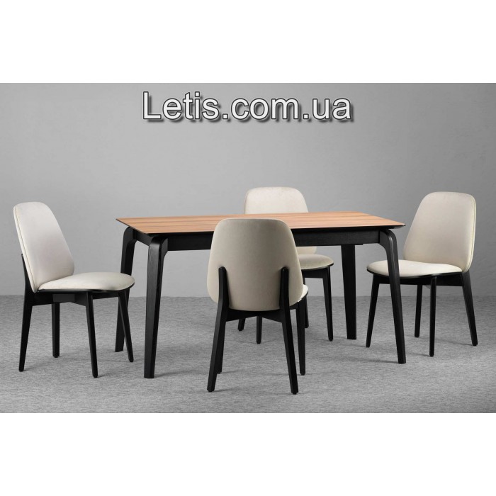 Динамічний силует, комфортна м’яка посадка, елегантна спинка. Добре підкреслює строгі лінії стільниці й додає легкості обідній зоні. -